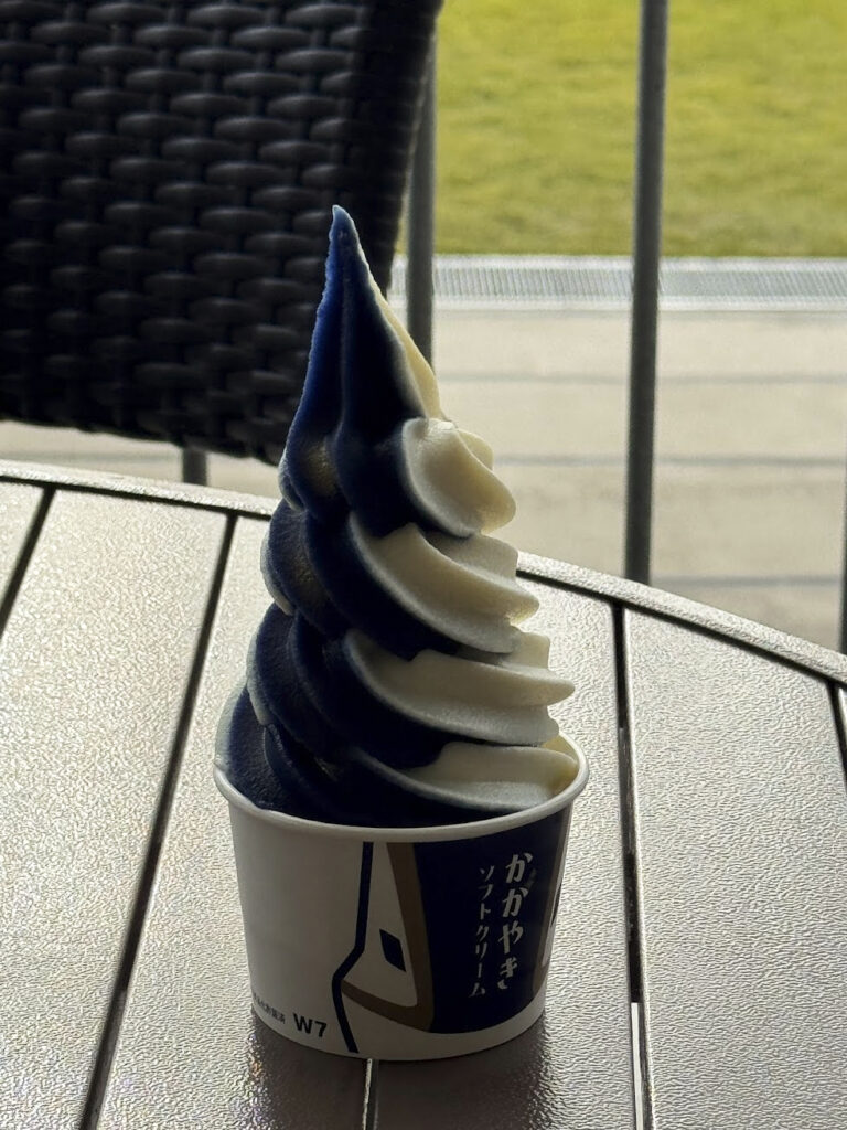 少し気温が低かったのですが、同センターの名物らしい かがやきアイスをいただきました。おいしかったです。